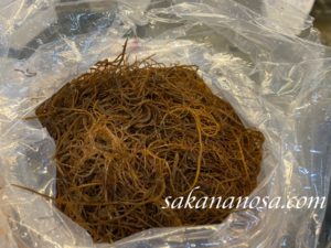 その中に生のめかぶ(茎めかぶ)っていうちょっとヒダヒダが目立つねばりがあるものが並ぶことがあります。