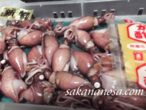 日本海側で水揚げされるイカです。ヒレが大きく耳に見えます。見たことない人が多いかもしれません。魚屋さんは覚えておいてくださし。