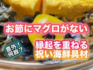 タラやエビ、タイ、サケやブリがおせち料理に入っているのはよくみます。